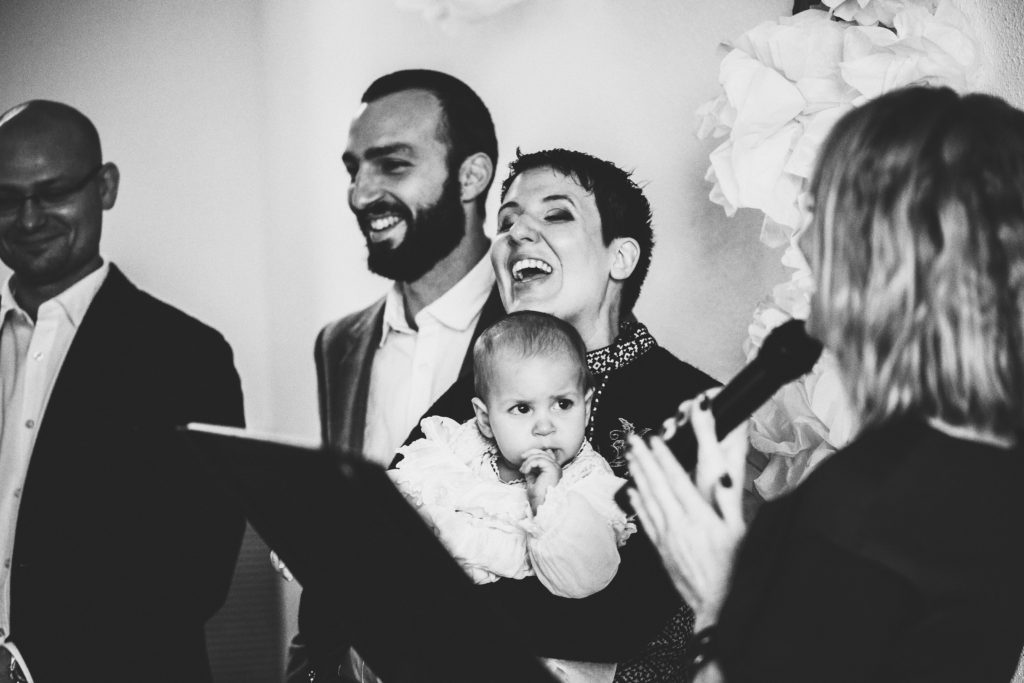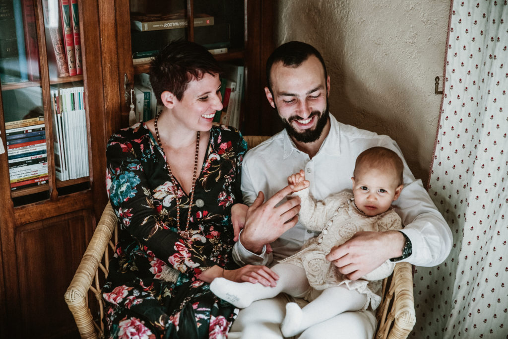 Photographier un baptême, c’est un peu comme faire partie de la famille du petit baptisé. Comme dans les mariages, le photographe dispose d’une place de choix pour tout voir, tout entendre… Nous avions ce jour-là une officiante d’une grande qualité : Mona Rêve, qui connait bien Ambre pour avoir beaucoup travaillé avec elle, et l’émotion était très palpable. Le fait que le premier anniversaire de cette petite fille était aussi fêté ce jour a encore ajouté à l’émotion… J’ai donc eu l’extrême honneur, comme à mon habitude, de pleurer devant tous les convives quand la maman a tenté de lire son joli discours à son bébé. Ne soyez pas surpris voyons, vous savez bien depuis le temps que je pleure TOUJOURS dans ces moments là ?