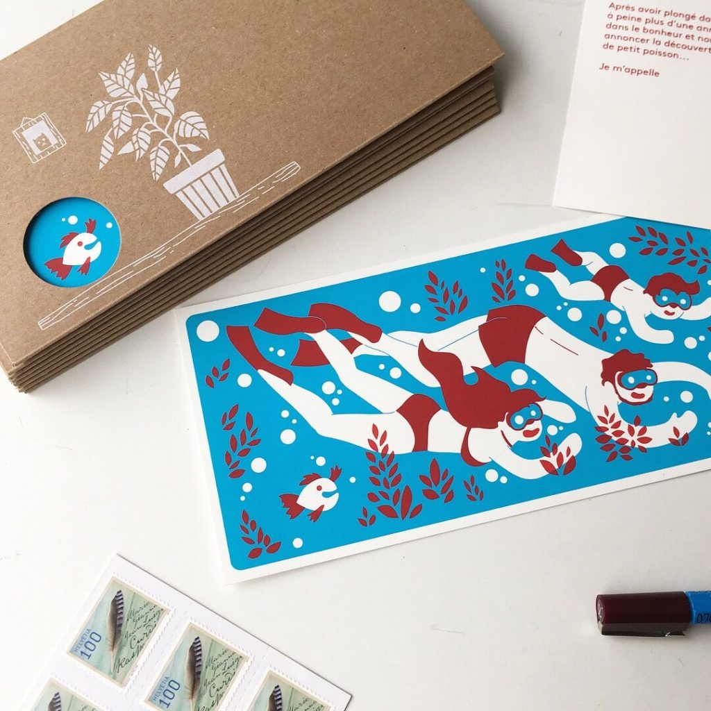 Sophie est une femme formidable, dotée d’un grand talent. Vous pouvez voir son travail ici : www.sophiegagnebin.ch . Je vous conseille de faire un petit tour dans le blog, ça vaut vraiment le détour !! Sophie crée pour ses clients des graphismes totalement personnalisés (elle m’a fait mon logo par exemple, dont je suis absolument fan 😀 ). Elle travaille autant avec des artistes musicaux, pour lesquels elle crée des pochettes d’albums ou de vinyles avec www.outofgas.ch , que des faire-part de mariage ou de naissance, mais encore de la communication visuelle d’entreprise. Sophie est à l’écoute des besoins, et très inspirée. En plus de la conception graphique, Sophie est illustratrice ! Elle aime sérigraphier sur toute sorte de supports des designs hauts en couleur. Elle plie et coupe elle-même la plupart des objets créés dans son atelier, un travail de longue haleine qui marque vraiment lorsqu’on a ses objets en main. Recevoir un faire-part réalisé par Sophie, c’est un peu comme recevoir un joli bijou dans un écrin soigné, un réel émerveillement !
