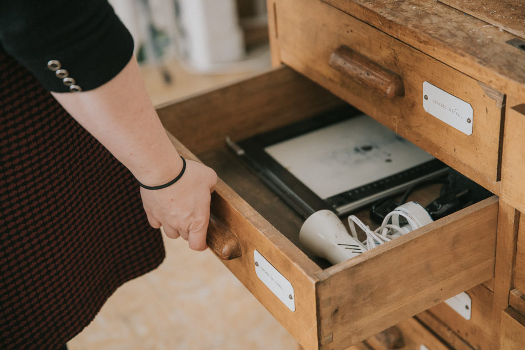 J’ai donc rendu visite à Sophie dans son bureau et son atelier, où elle m’a montré sa façon de travailler et son matériel. C’était passionnant ! Voir le processus de création d’un artisan est toujours intéressant, mais voir le processus complet était vraiment révélateur du cœur que Sophie met dans son ouvrage. J’ai pu lui réaliser quelques images utiles pour sa communication, que je vais bien évidemment vous montrer !