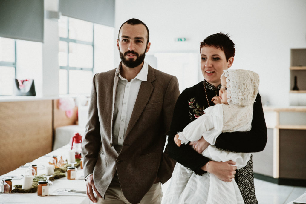 Photographier un baptême, c’est un peu comme faire partie de la famille du petit baptisé. Comme dans les mariages, le photographe dispose d’une place de choix pour tout voir, tout entendre… Nous avions ce jour-là une officiante d’une grande qualité : Mona Rêve, qui connait bien Ambre pour avoir beaucoup travaillé avec elle, et l’émotion était très palpable. Le fait que le premier anniversaire de cette petite fille était aussi fêté ce jour a encore ajouté à l’émotion… J’ai donc eu l’extrême honneur, comme à mon habitude, de pleurer devant tous les convives quand la maman a tenté de lire son joli discours à son bébé. Ne soyez pas surpris voyons, vous savez bien depuis le temps que je pleure TOUJOURS dans ces moments là ?