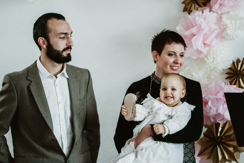 Avant de partir pour la cérémonie de baptême, ou plutôt, dans le cas de cette adorable bambine, une cérémonie de parrainage (un baptême civil avec deux parrains), j’ai pu faire quelques photos de Rune pendant sa préparation, et avec ses proches.