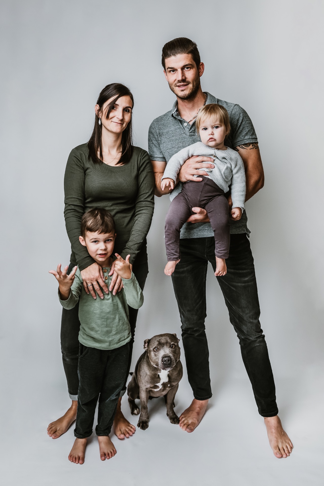 Pendant la séance de photo de Famille, ma priorité c’est qu’on sente votre lien familial, on fait donc des photos de chaque membre de la famille mais aussi par petits groupes (la fratrie ensemble, toi avec les enfants, taon partenaire avec les enfants, le chien avec toute la famille etc… ). Tout cela peut se faire de manière posée classique (avec ma petite touche pour un look 100% naturel et à l’aise bien sûr !), ou de manière plus spontanée ! En général, ta galerie sera un mélange des deux : à peine + posée en studio, à peine + spontanée en extérieur.