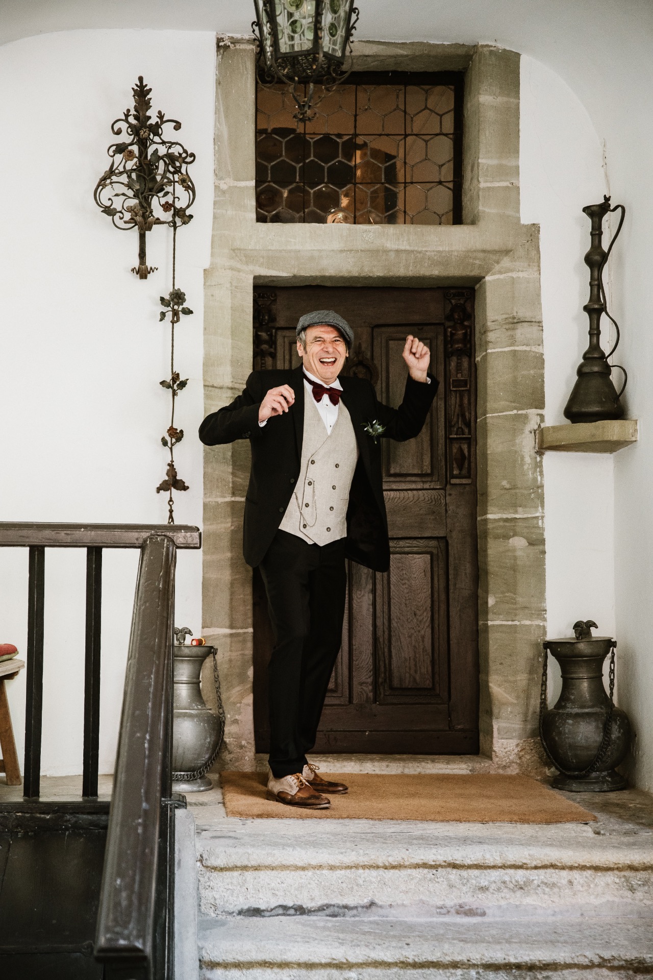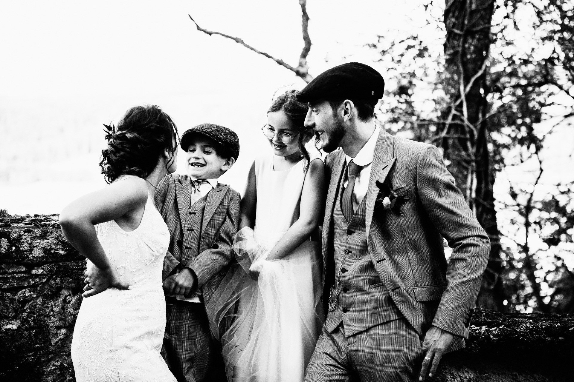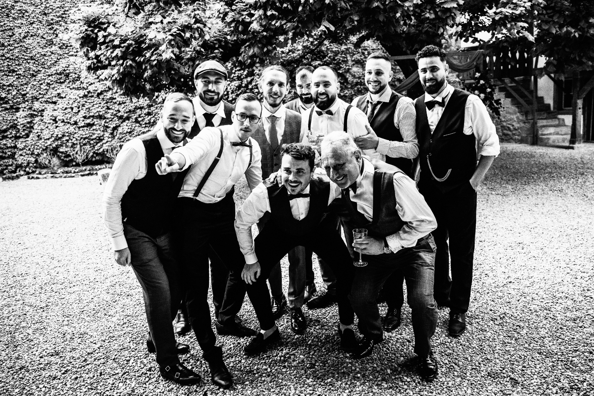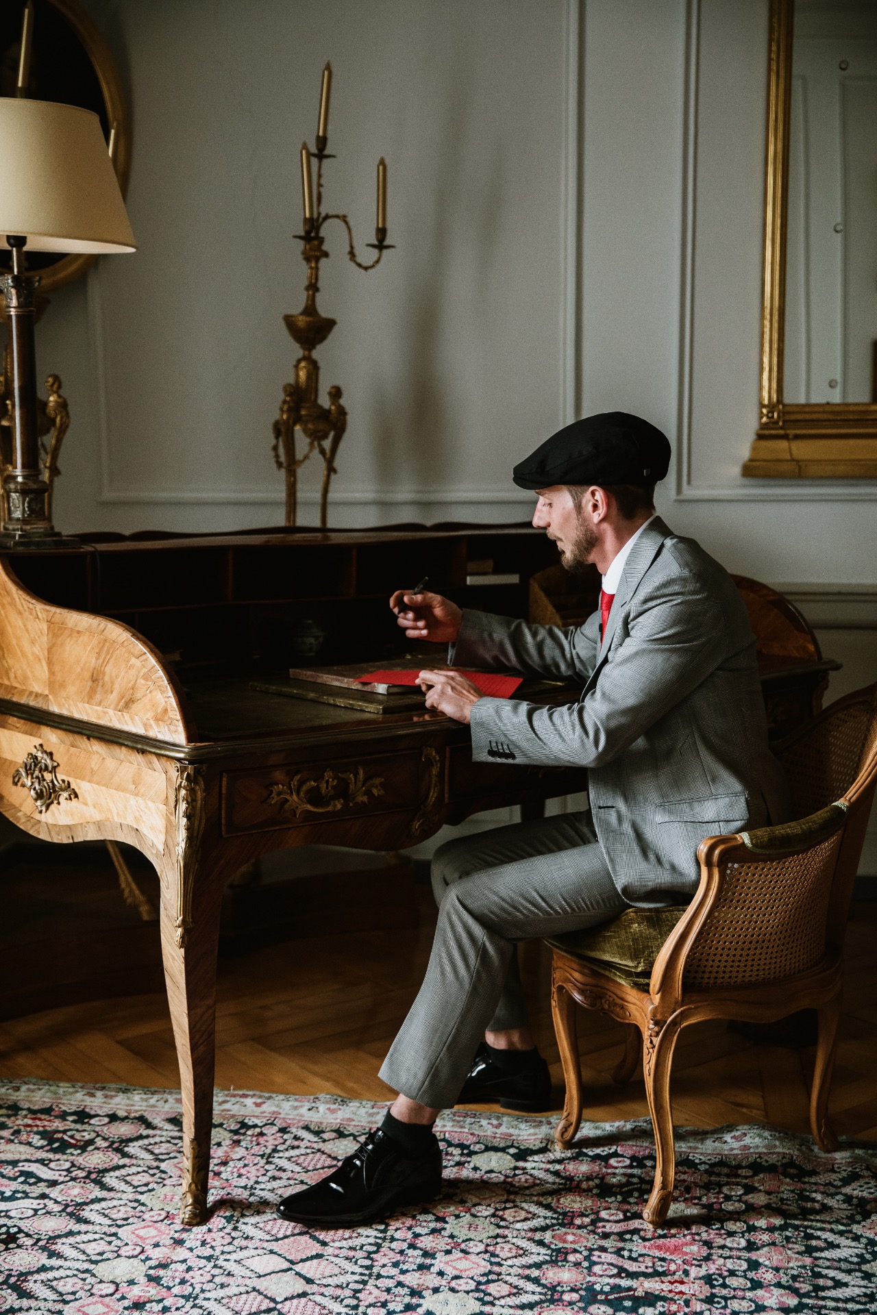 On avait tellement d’idées de photos trop stylées d’eux deux, pour lesquelles le château se prêtait à merveille ! Nous avons aussi pu faire des photos absolument dingues d’eux et leurs proches en full Peaky Blinders : On s’est éclatés. 🤩