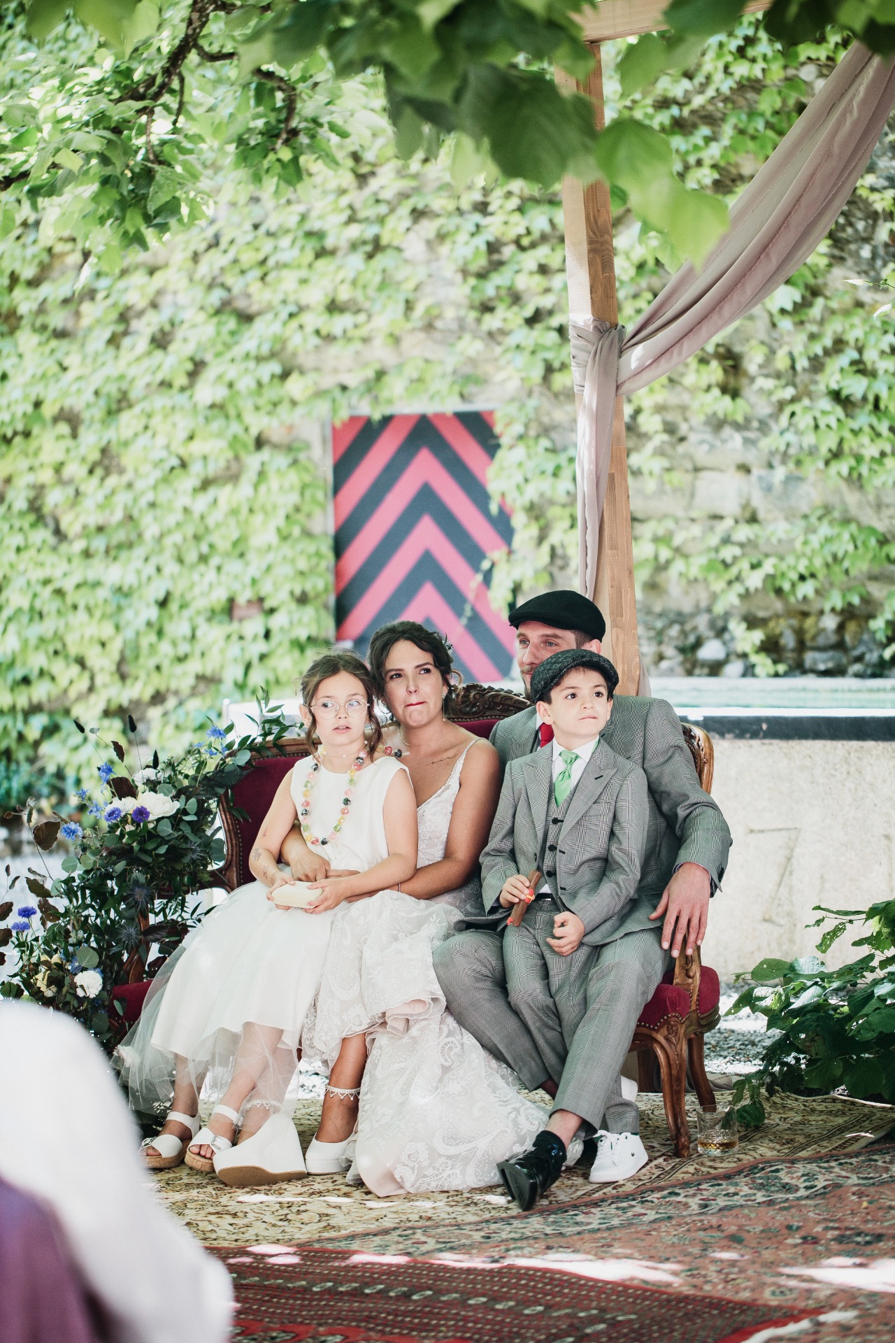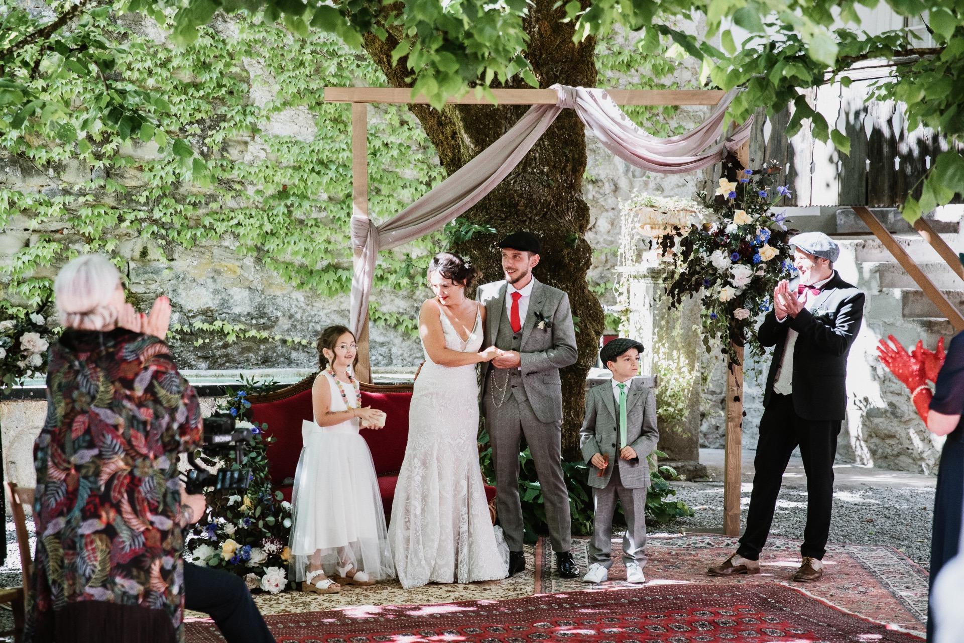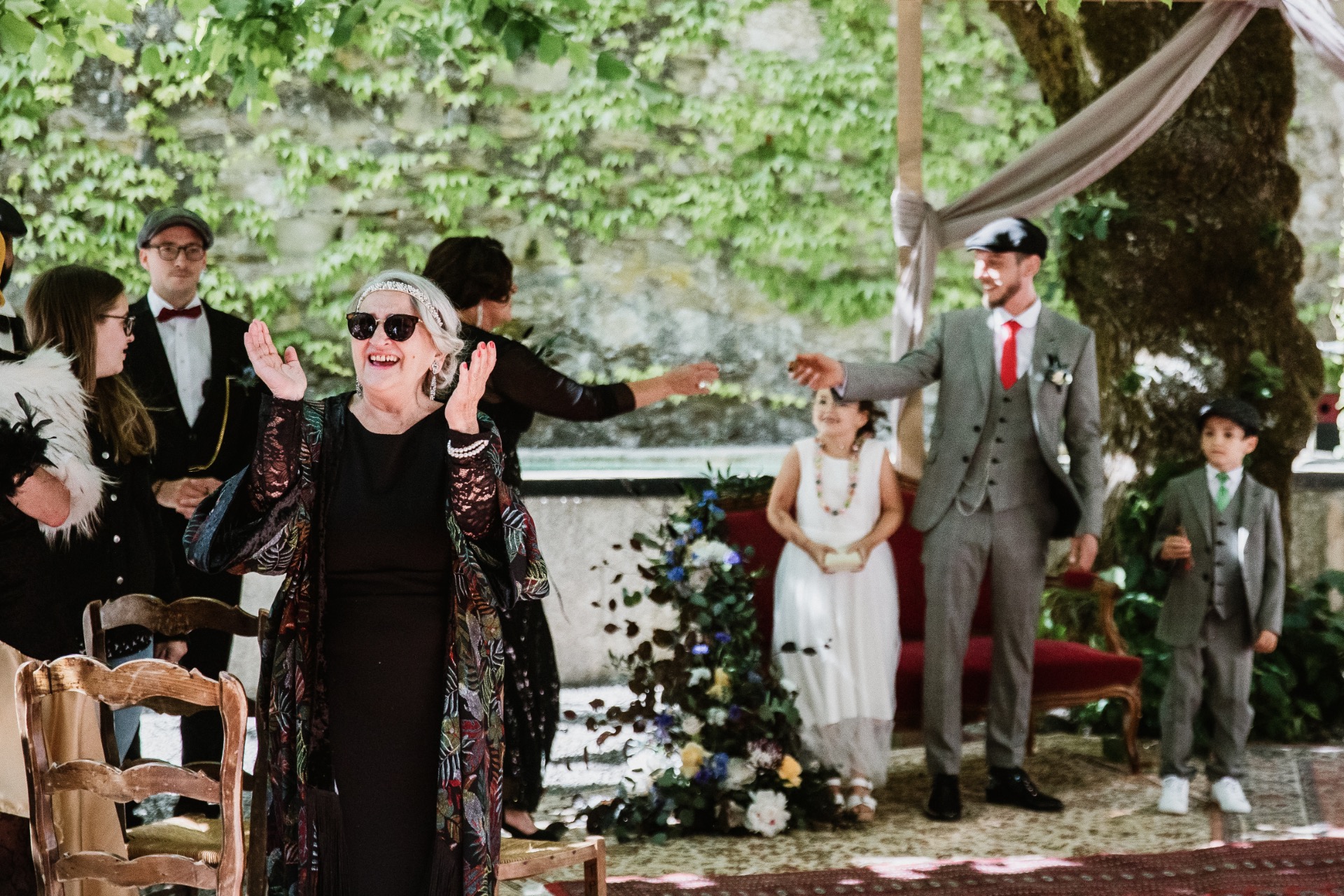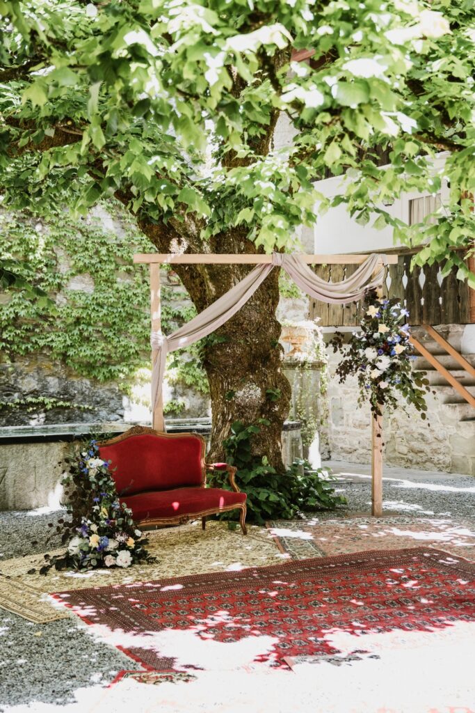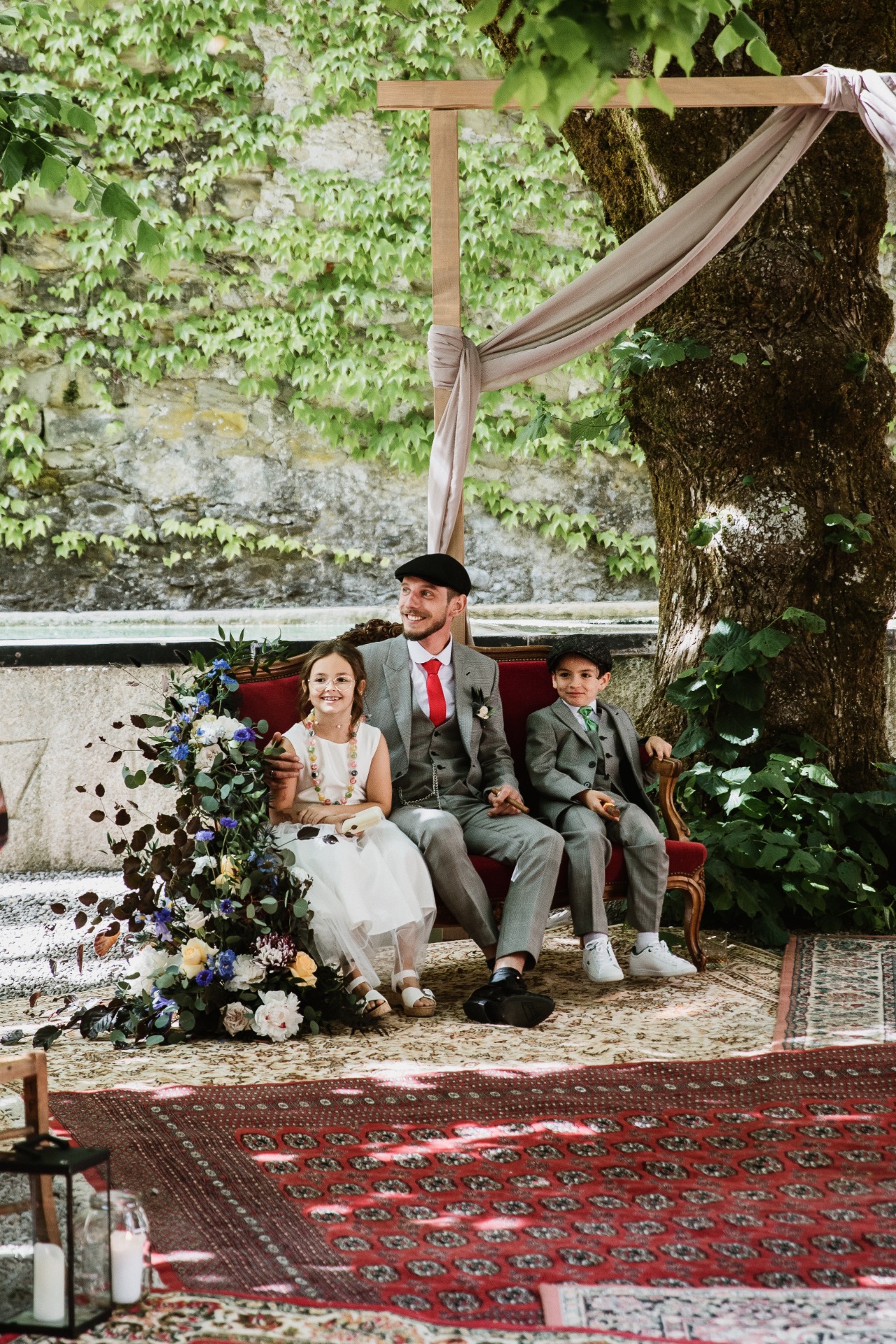 Une fois que tous nos yeux avaient bien coulé, il était l’heure de la Cérémonie laïque de Mariage. Elle s’est déroulée dans la cour intérieure, à l’ombre de ce magnifique arbre. Officiée par Fresame Mucho, un duo d’officiantes que je suis régulièrement avec toujours beaucoup de plaisir ❤️