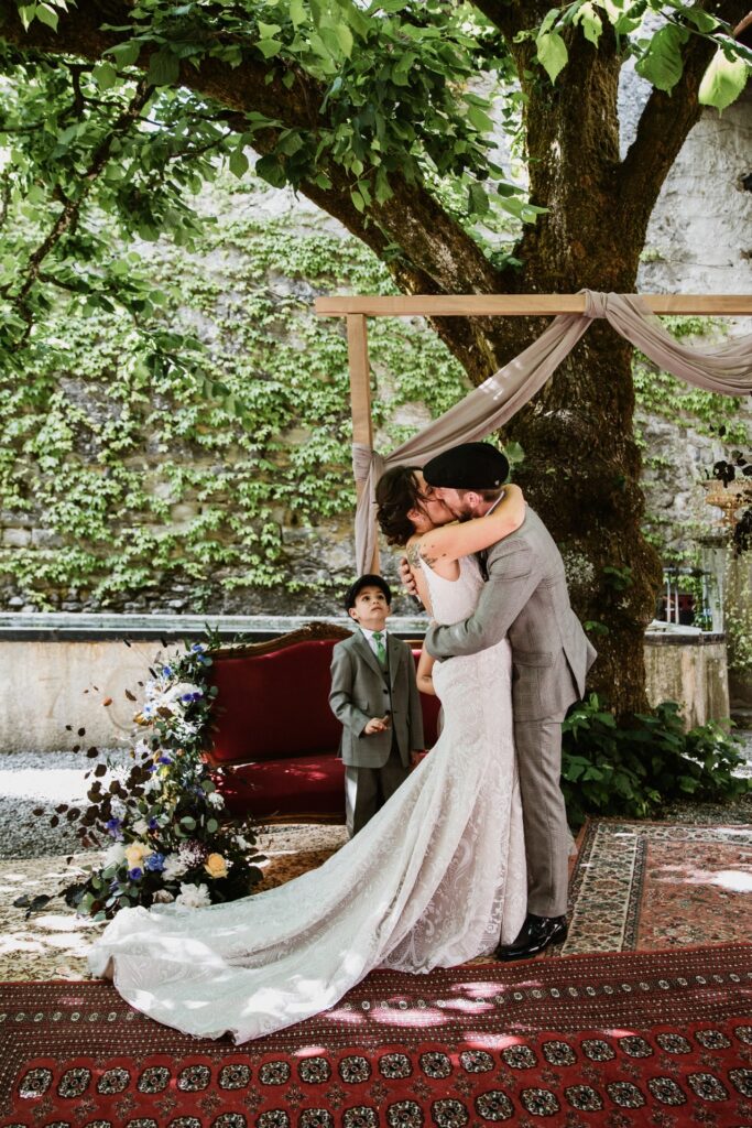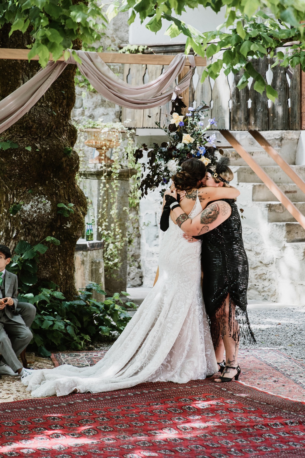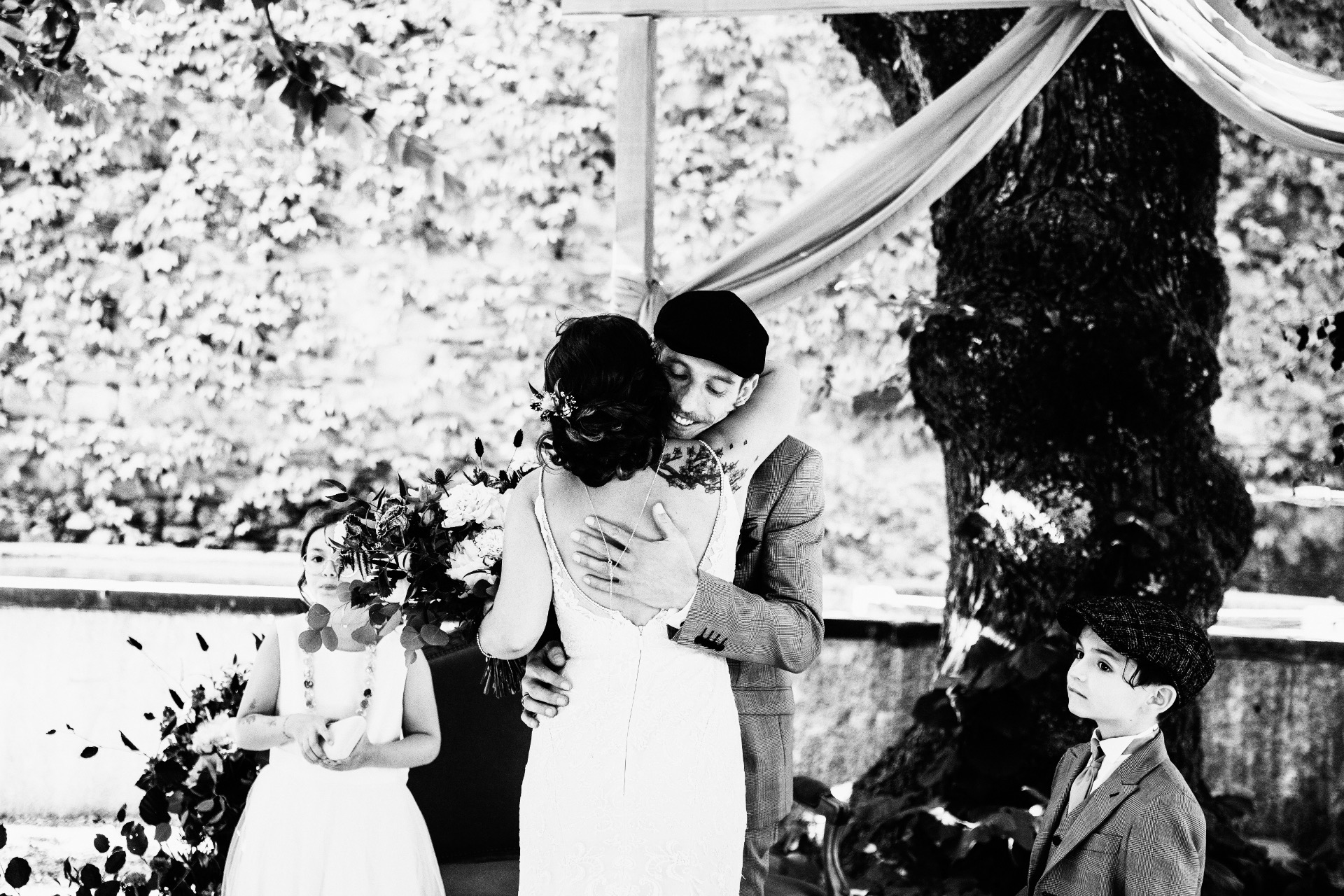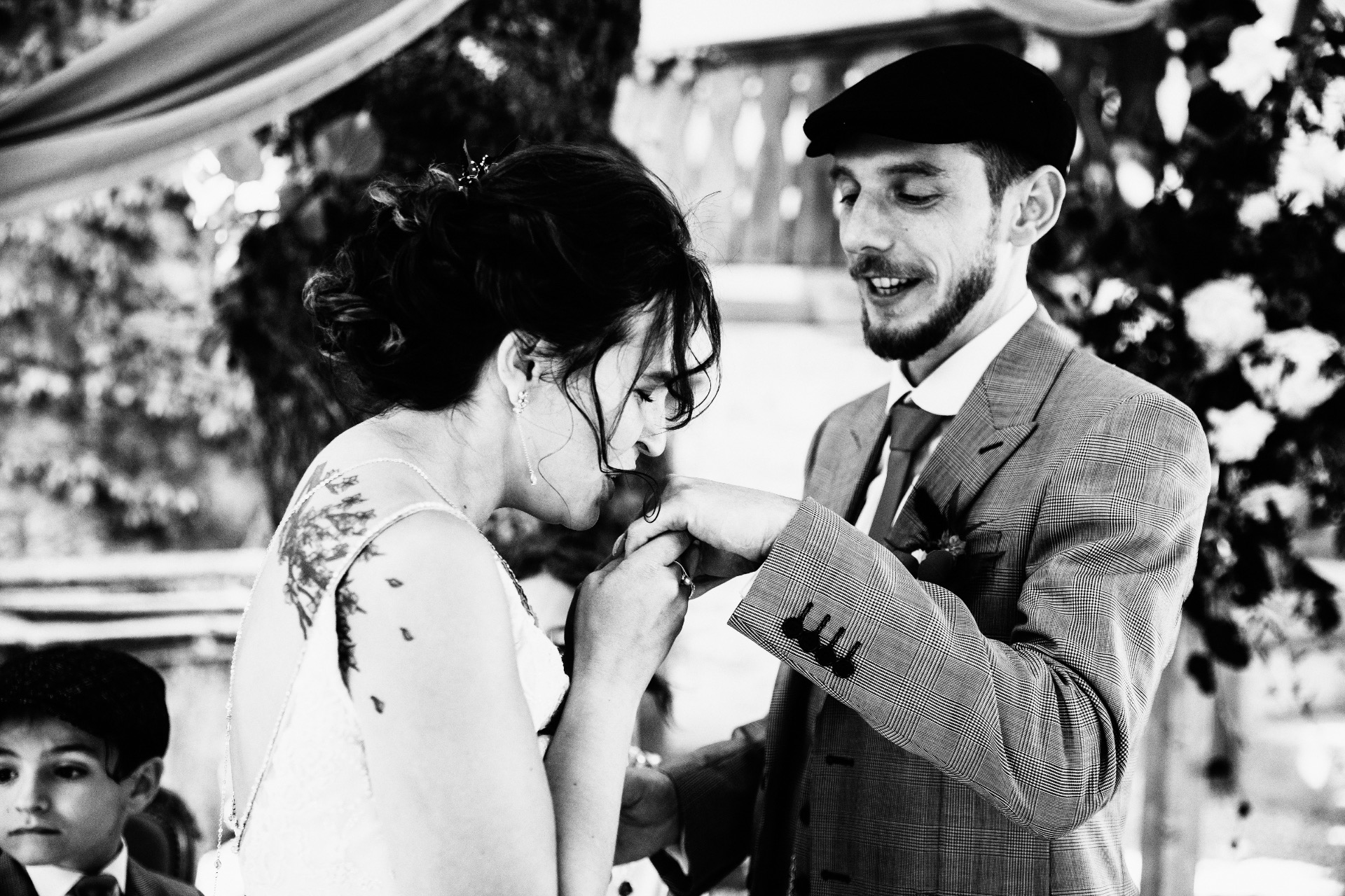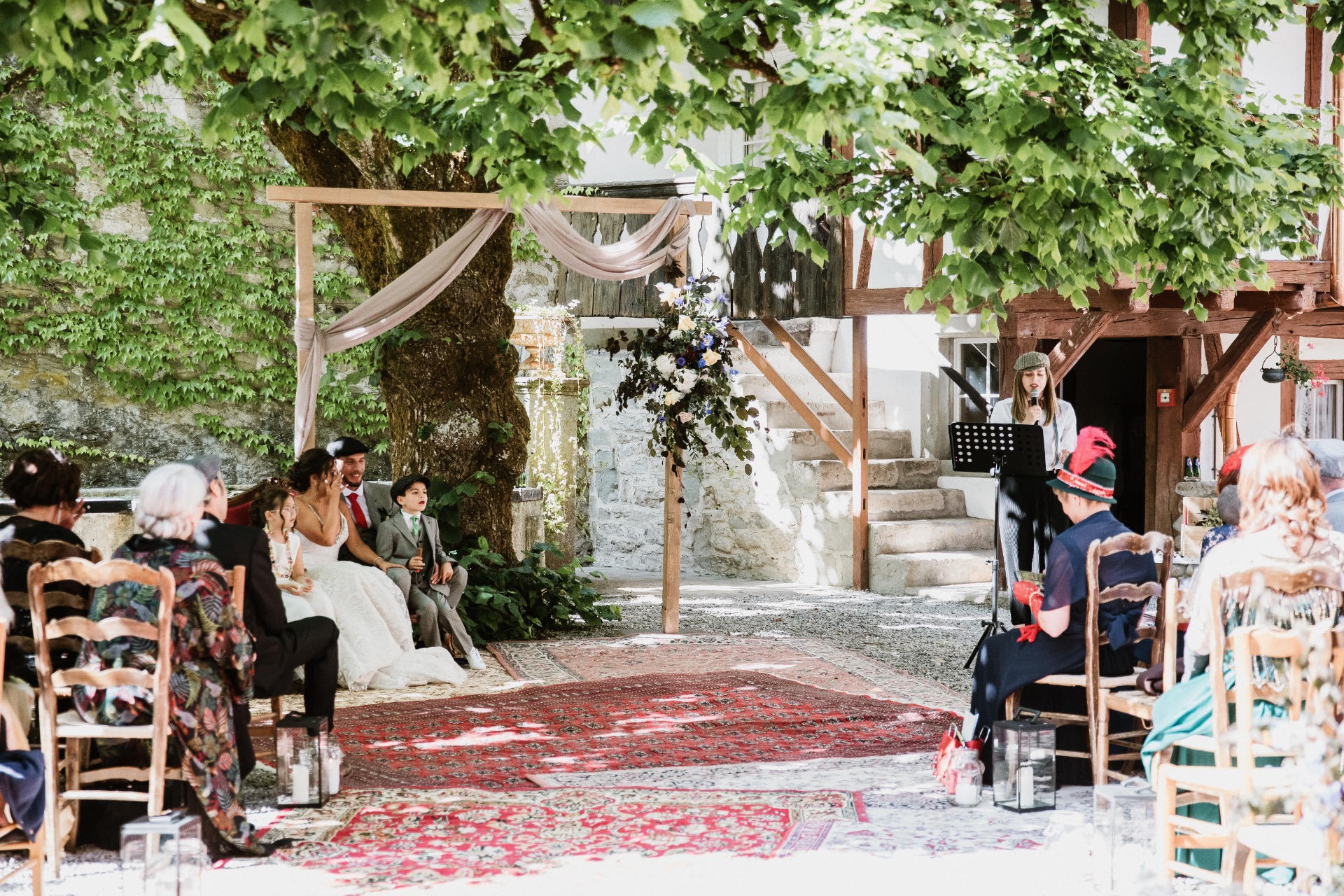 Une fois que tous nos yeux avaient bien coulé, il était l’heure de la Cérémonie laïque de Mariage. Elle s’est déroulée dans la cour intérieure, à l’ombre de ce magnifique arbre. Officiée par Fresame Mucho, un duo d’officiantes que je suis régulièrement avec toujours beaucoup de plaisir ❤️