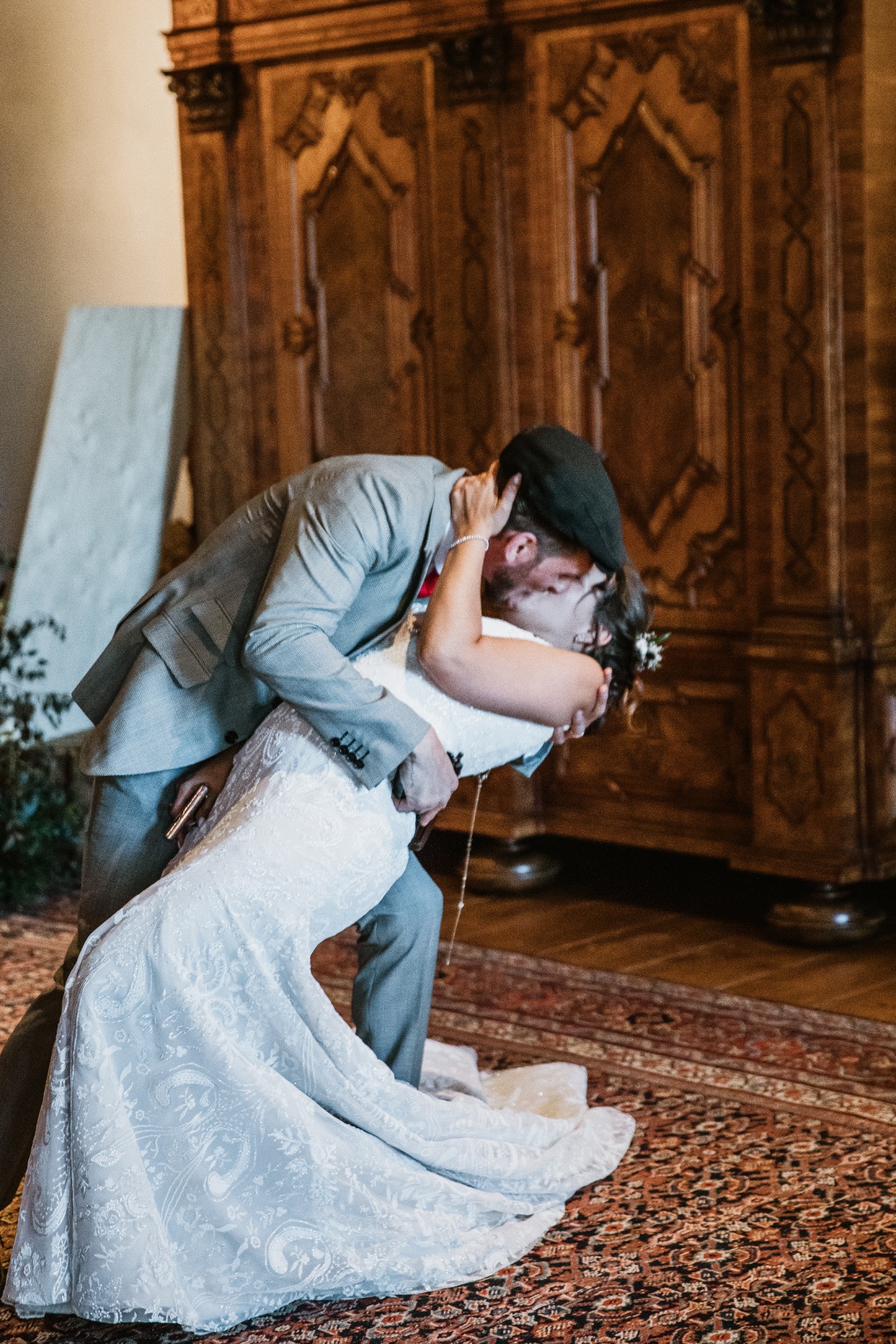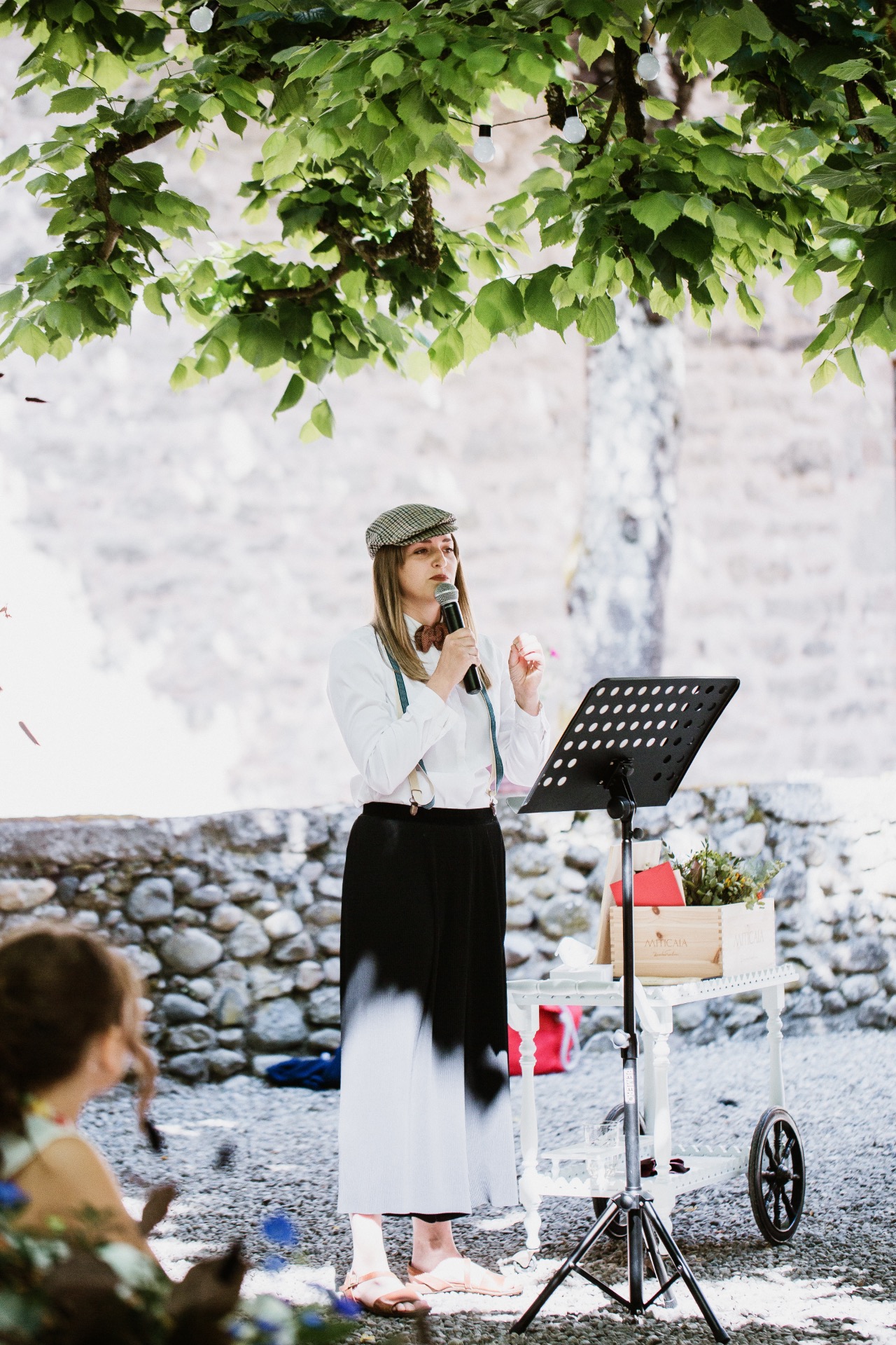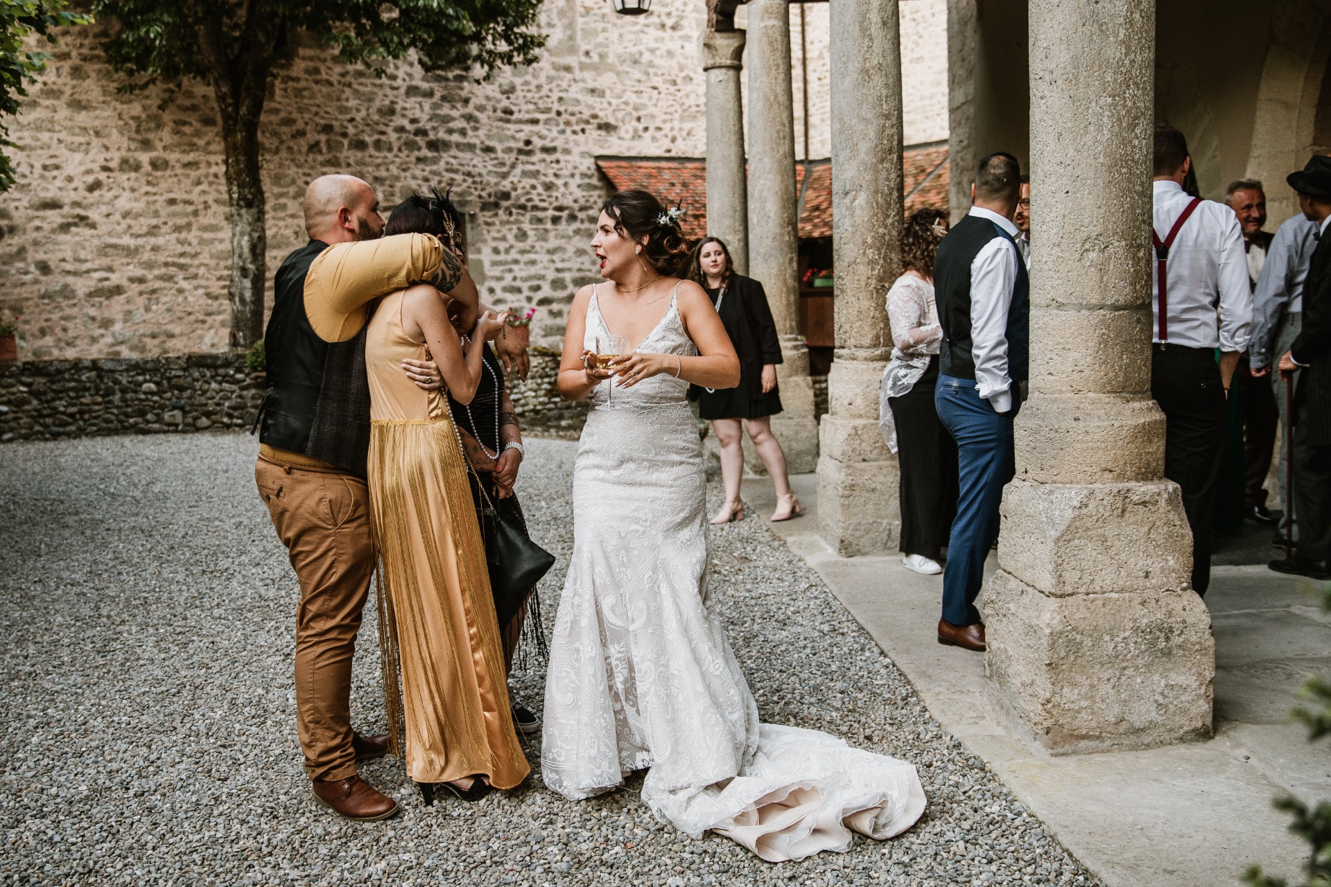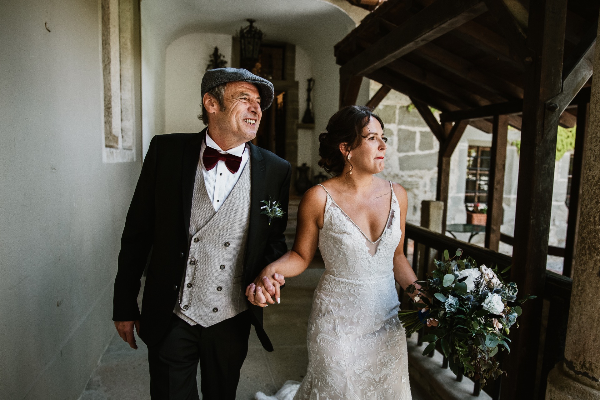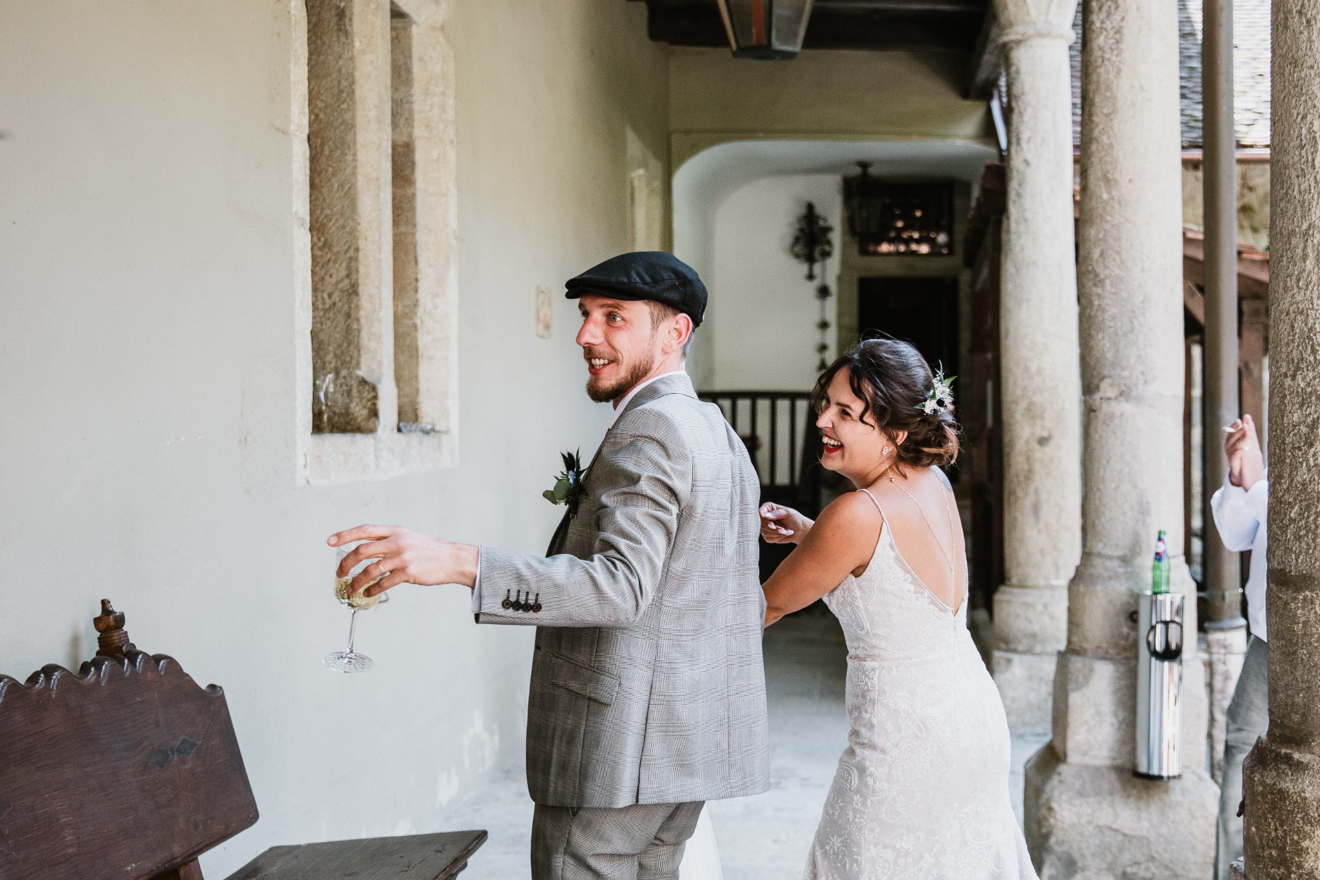 Pour ce mariage décidément unique, nos amoureux ont choisi de se non-découvrir avant la cérémonie, dans l’intimité d’une des magnifiques pièces du château de Lucens. Le but était de se rejoindre, mais sans se voir, pour se lire leurs voeux de mariage dos à dos.