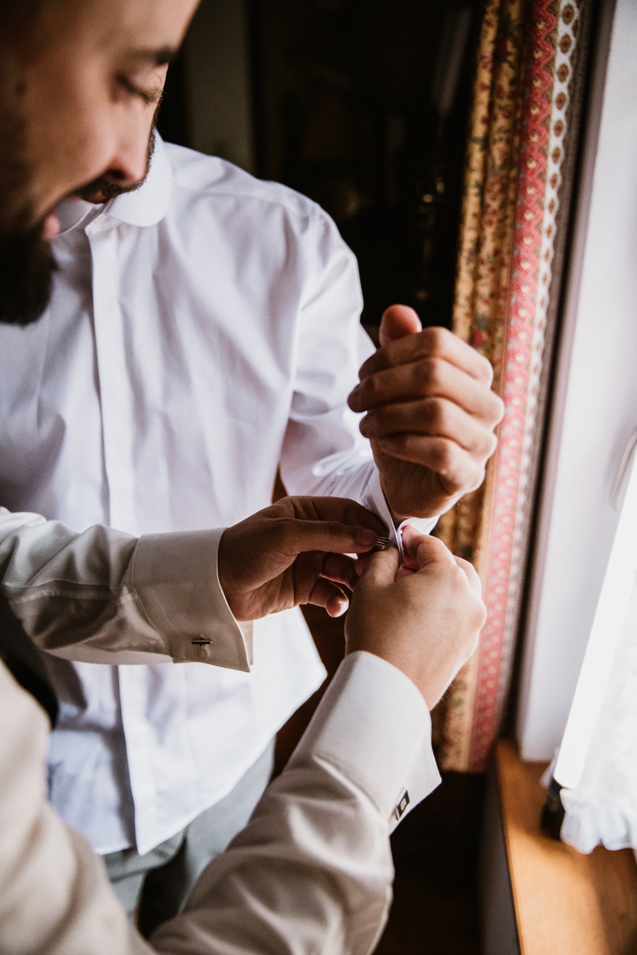 Les photos des préparatifs des mariés font partie de mes moments favoris de la journée de mariage. J’adore me faufiler comme une souris et capturer les émotions si douces de mes mariés avant le grand saut, dans l’intimité avec leurs plus proches alliés.