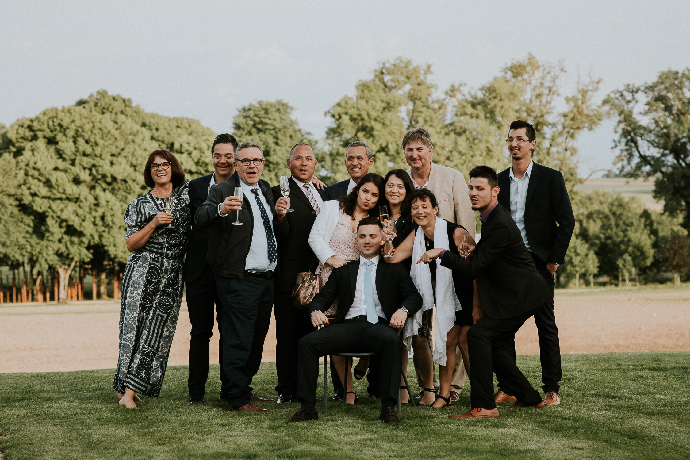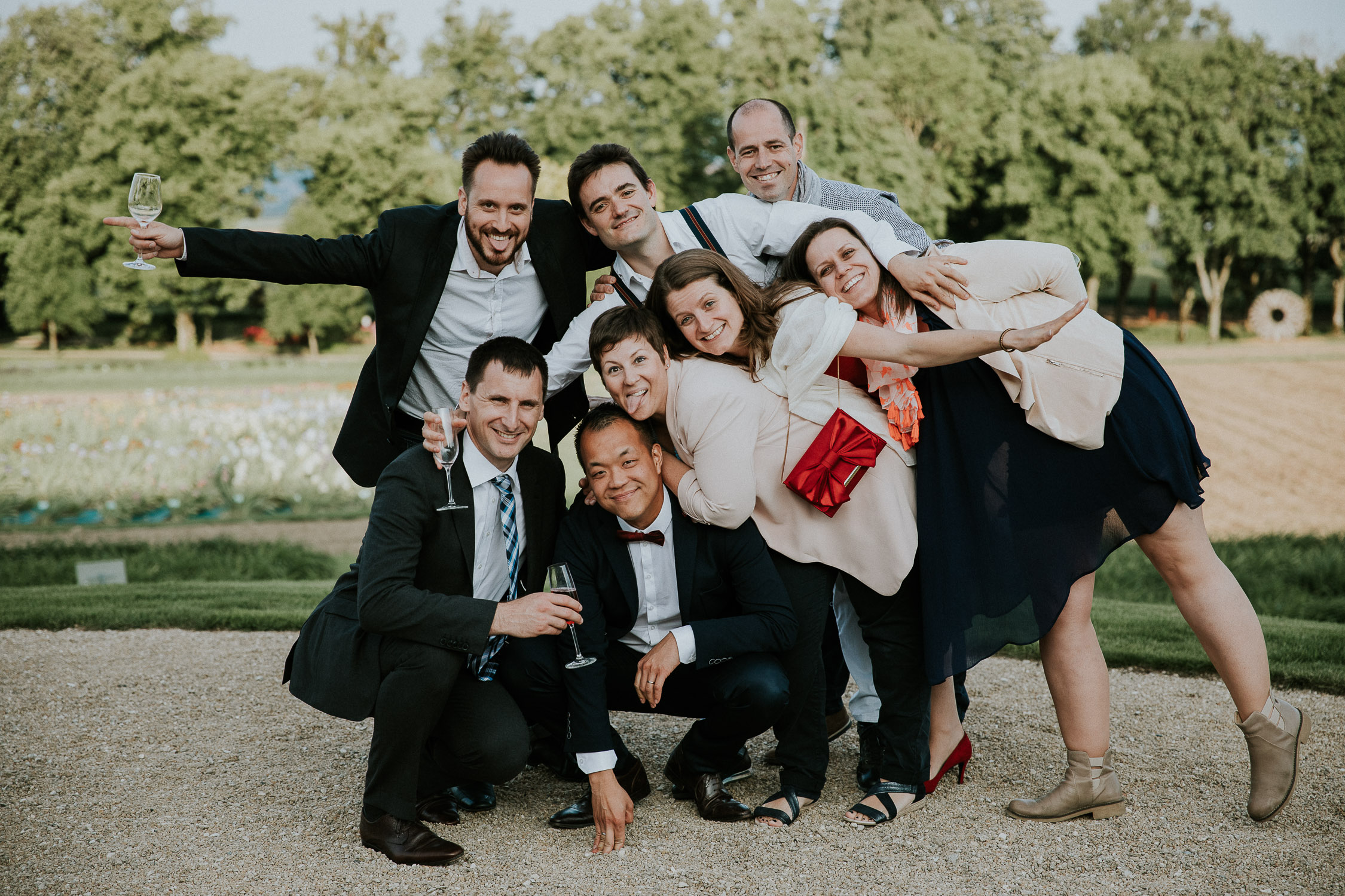 Un joli, copieux et très bon apéritif (bah oui, je dois bien goûter pour pouvoir vous en parler, non ? 😛 ) a eu lieu dans les jardins de la Porte Des Iris, les invités ont pu bien profiter malgré une météo un peu menaçante avant le repas et la soirée, rythmé une fois de plus par le duo de musique. Nous en avons profité pour faire quelques photos de groupe, puis des photos des mariés, que vous verrez dans le prochain article !