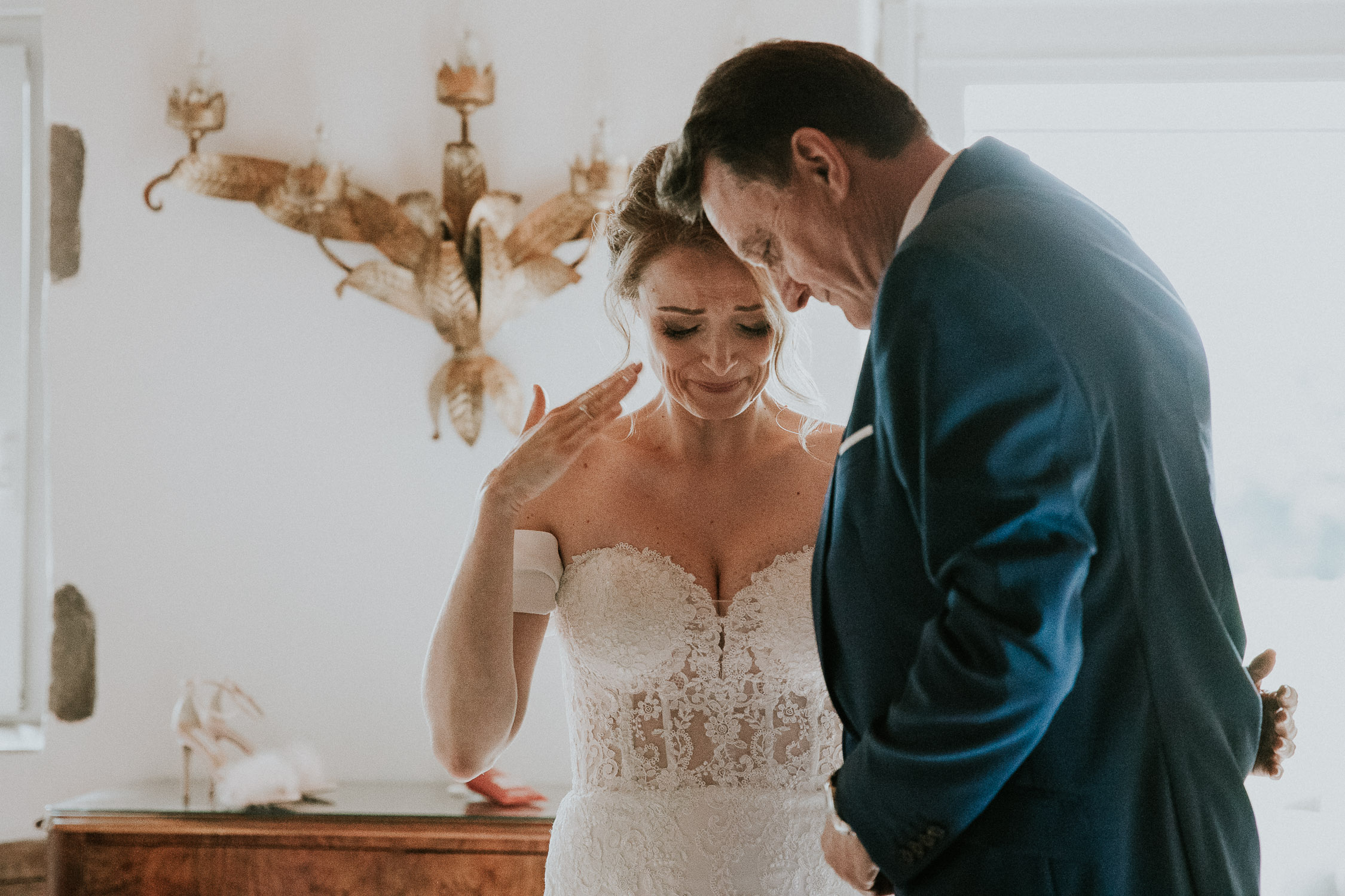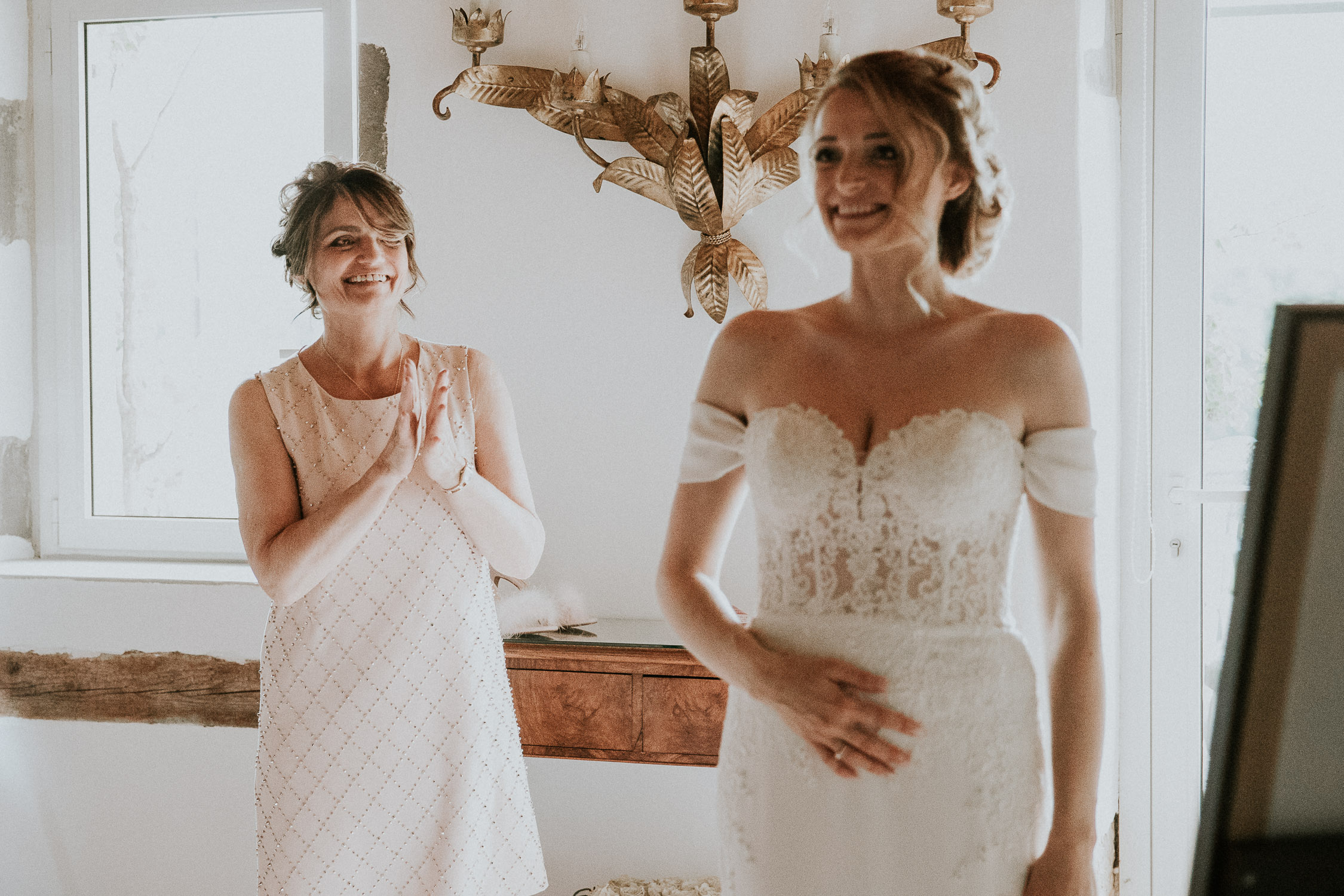 Ensuite, direction la Porte des Iris au Chateau de Vuillerens pour la préparation de la future mariée, on est tout de suite beaucoup plus dans l’ambiance du mariage, et l’émotion est déjà palpable. La mariée s’est préparée dans l’unes des magnifiques pièces du domaine de la Porte des Iris, avec sa maquilleuse, son coiffeur, sa sœur et sa maman. Une superbe équipe, très à l’écoute de la mariée. Moment privilégié pour nous photographes, être le témoin de l’émotion et de l’amour qui lie la mariée à ses parents et sa sœur. Un mariage décidément très émouvant !