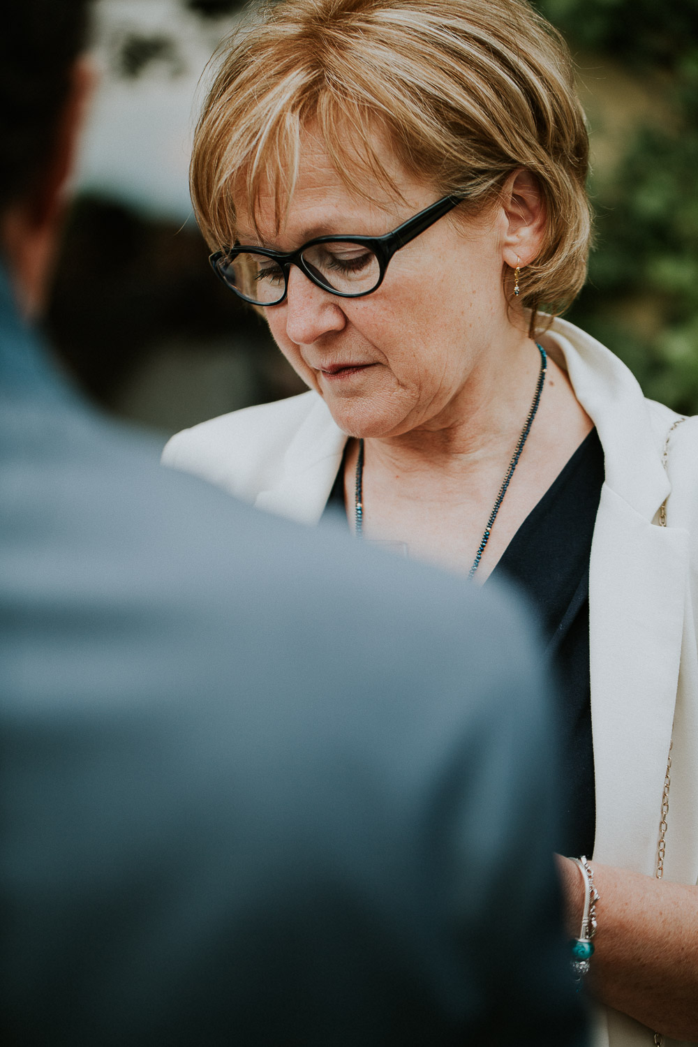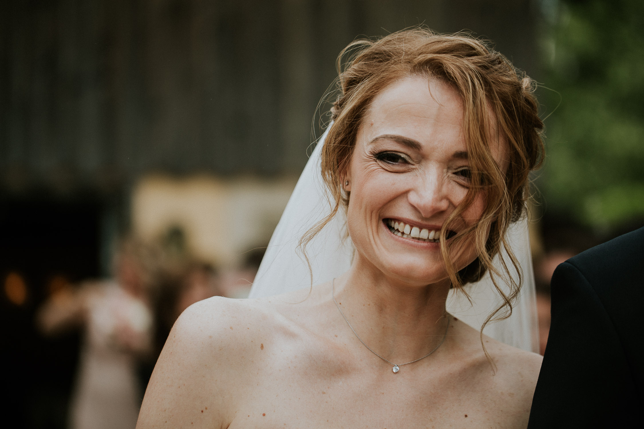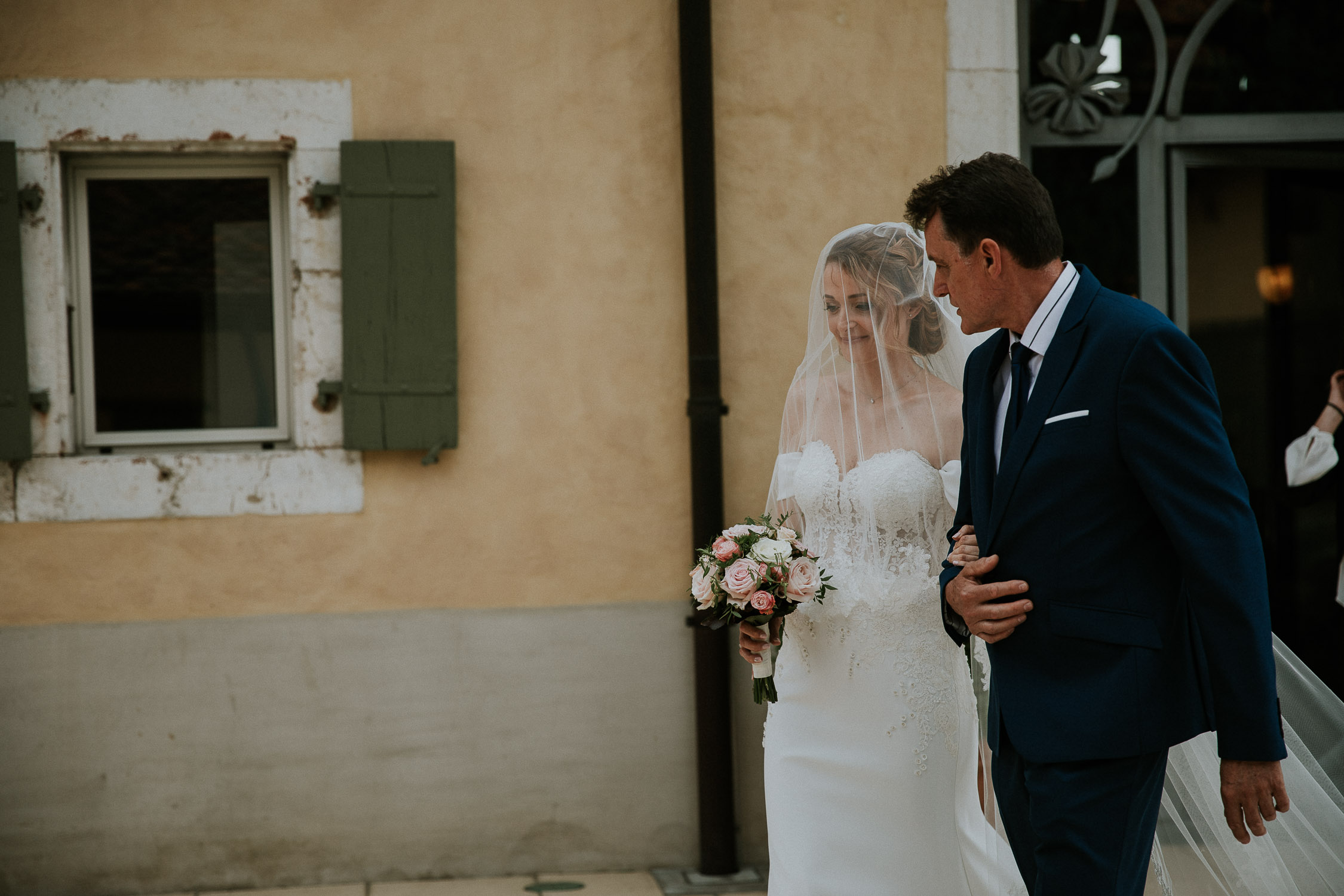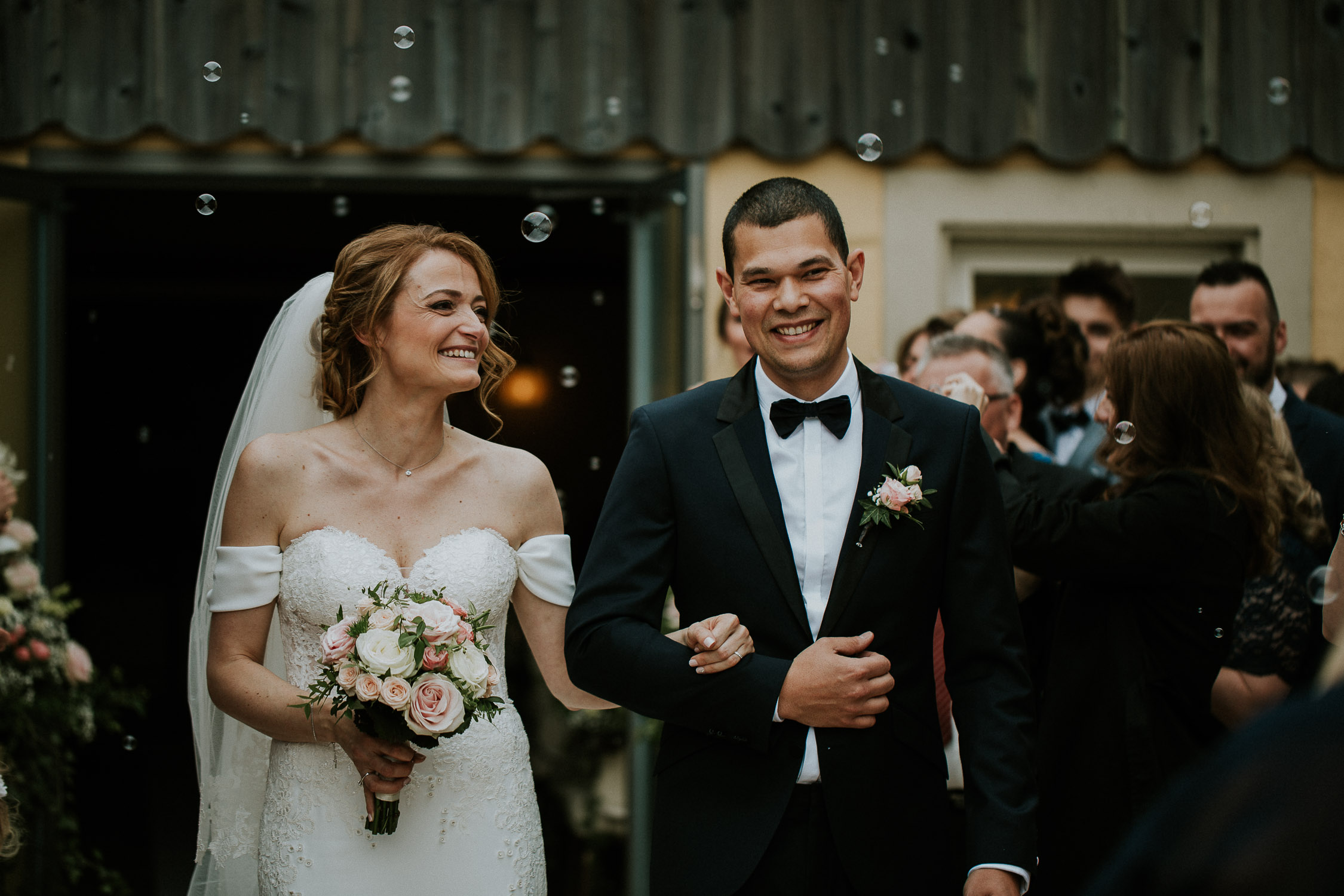 Une fois notre mariée prête, la cérémonie pouvait commencer. Sa robe était à couper le souffle ! Elle était complétée par un très long voile, accroché dans sa coiffure grâce à un peigne. La cérémonie de mariage se déroulait directement à la Porte des Iris, dans une petite salle dédiée, avec un officiant de l’état de Vaud. La salle était pleine, remplie de tout l’amour des familles et amis des mariés. De très émouvants discours se sont succédés, et les regards furent très humides, même les miens d’ailleurs (oui, je pleure toujours aux mariages haha !). La musique était live avec un duo de musicien et chanteuse.