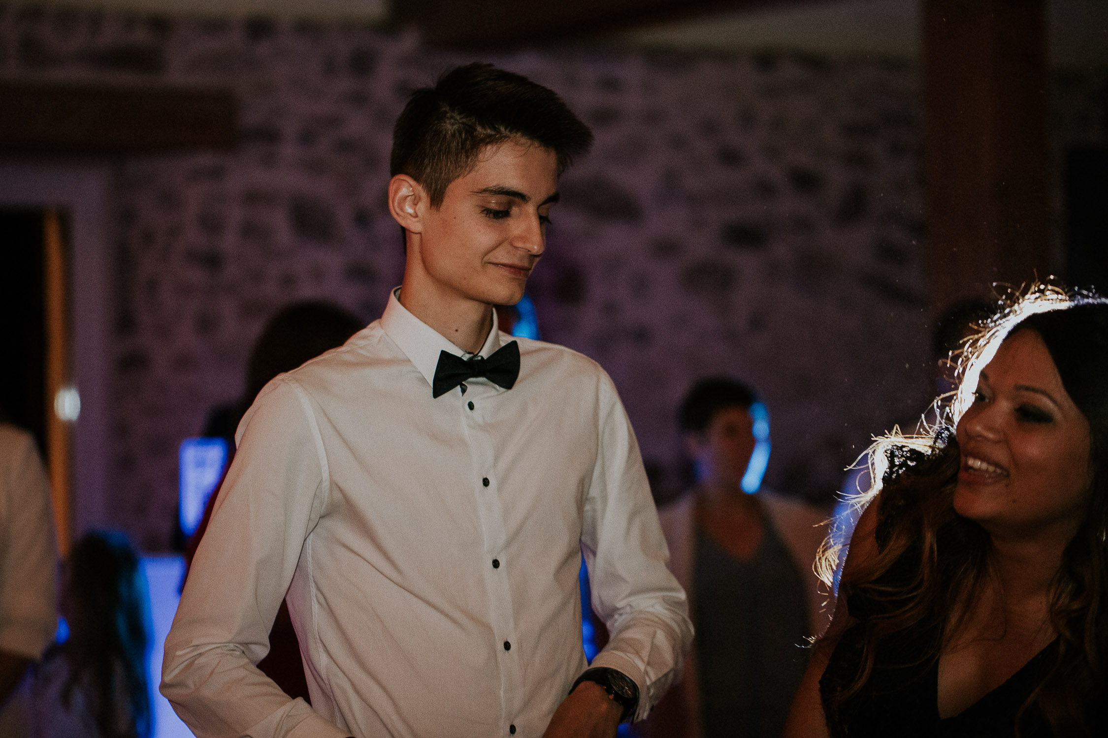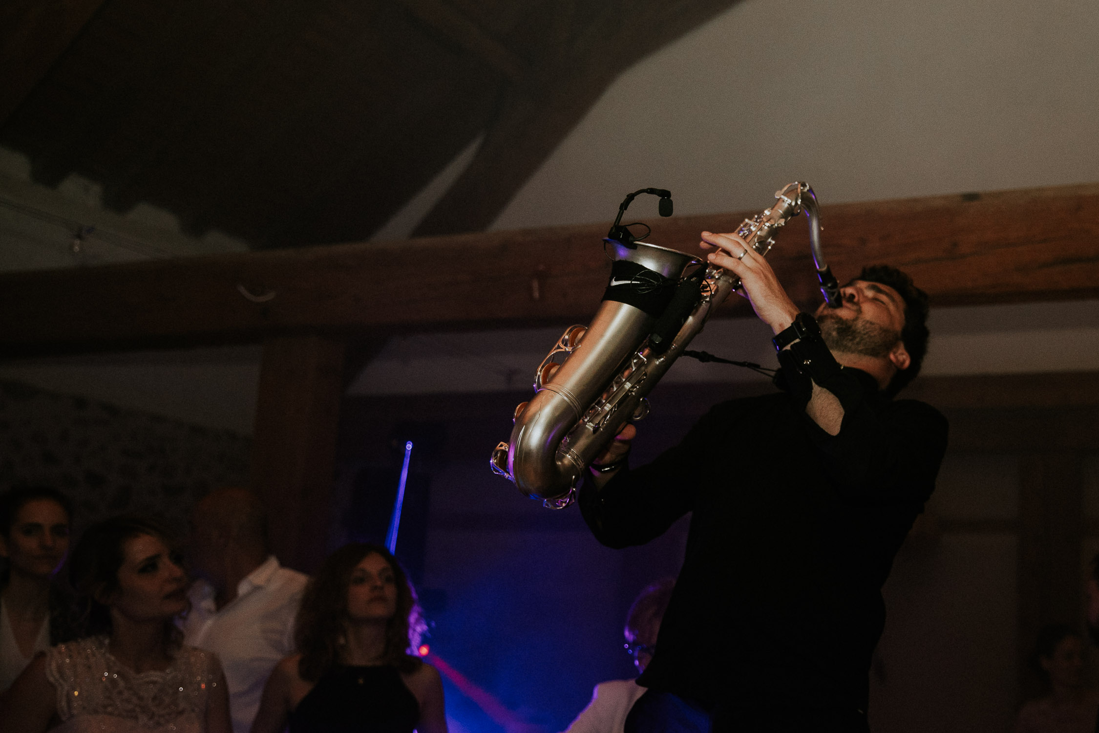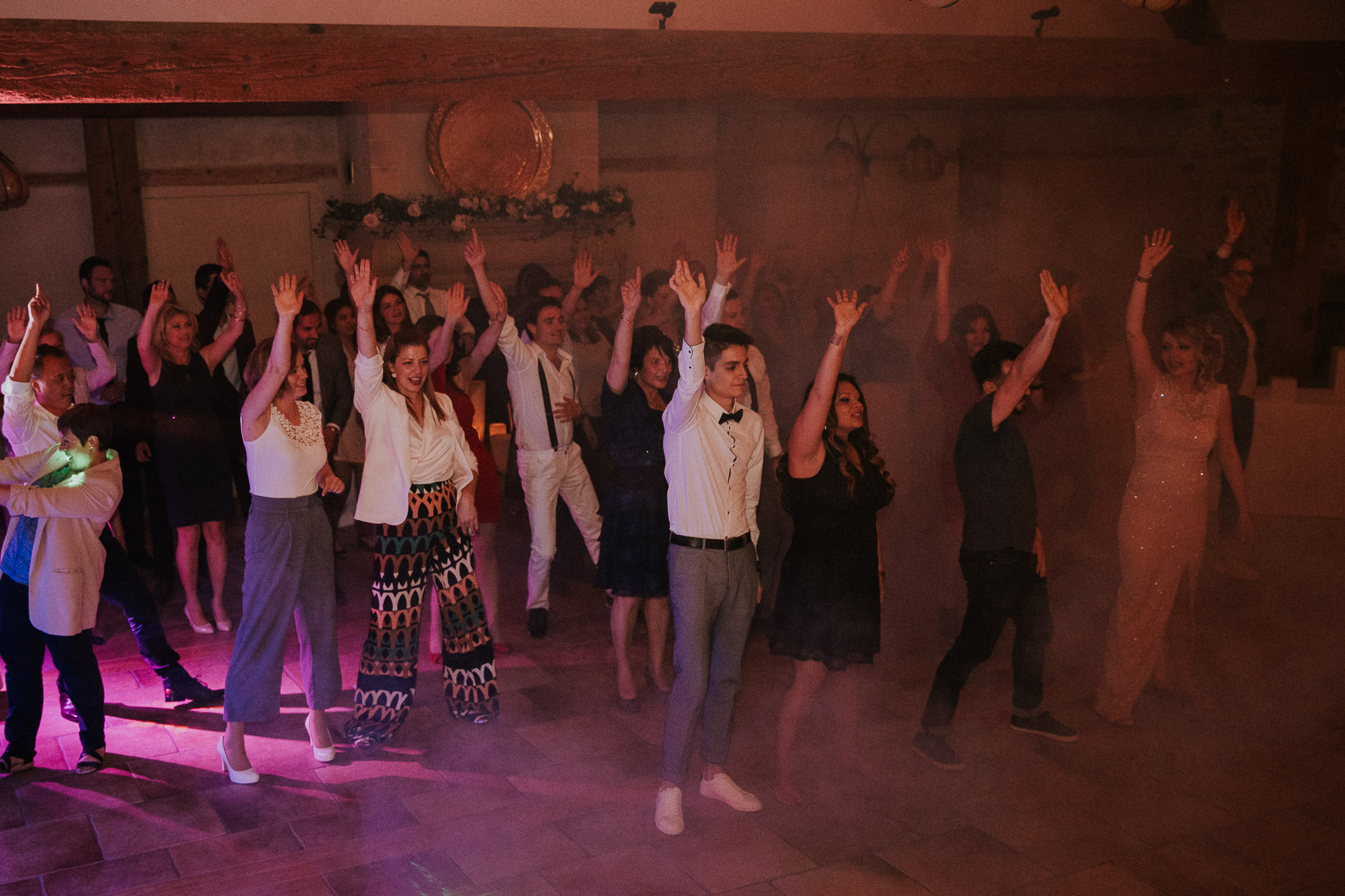 Place à la partie la plus festive de la journée, la soirée ! Comme on dit en Suisse, ce fut une sacrée noce ! Des invités déjantés, un DJ saxophoniste, un repas de rois… Je pense qu’on peut dire que la fête était une grande réussite et l’ambiance dingue… Les mariés ont ouvert le bal avec une chorégraphie incroyable (bon, ok, tous les invités avaient déjà commencé à danser dès l’arrivée des mariés dans la salle, mais ça compte quand même comme ouverture de bal, non ?), et la fête a continué jusque tard dans la nuit. La réception de ce mariage était remplie de joie, d’émotion et surtout d’amour, autant de la part des mariés que de la part de leurs familles et amis. Nous avons passé un excellent moment avec Christelle, et ce sera une joie de la suivre encore pour quelques mariages cet été ! 🙂