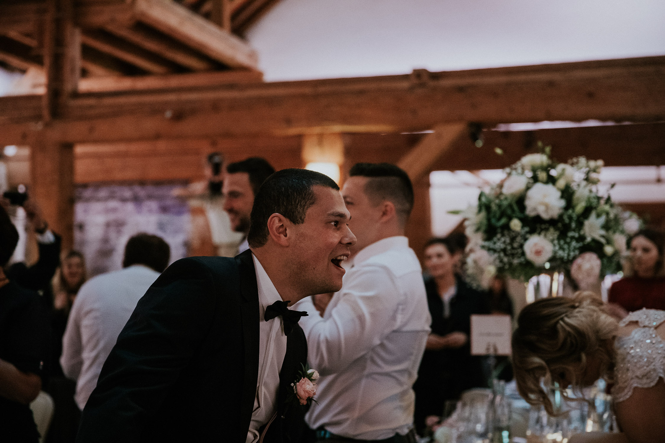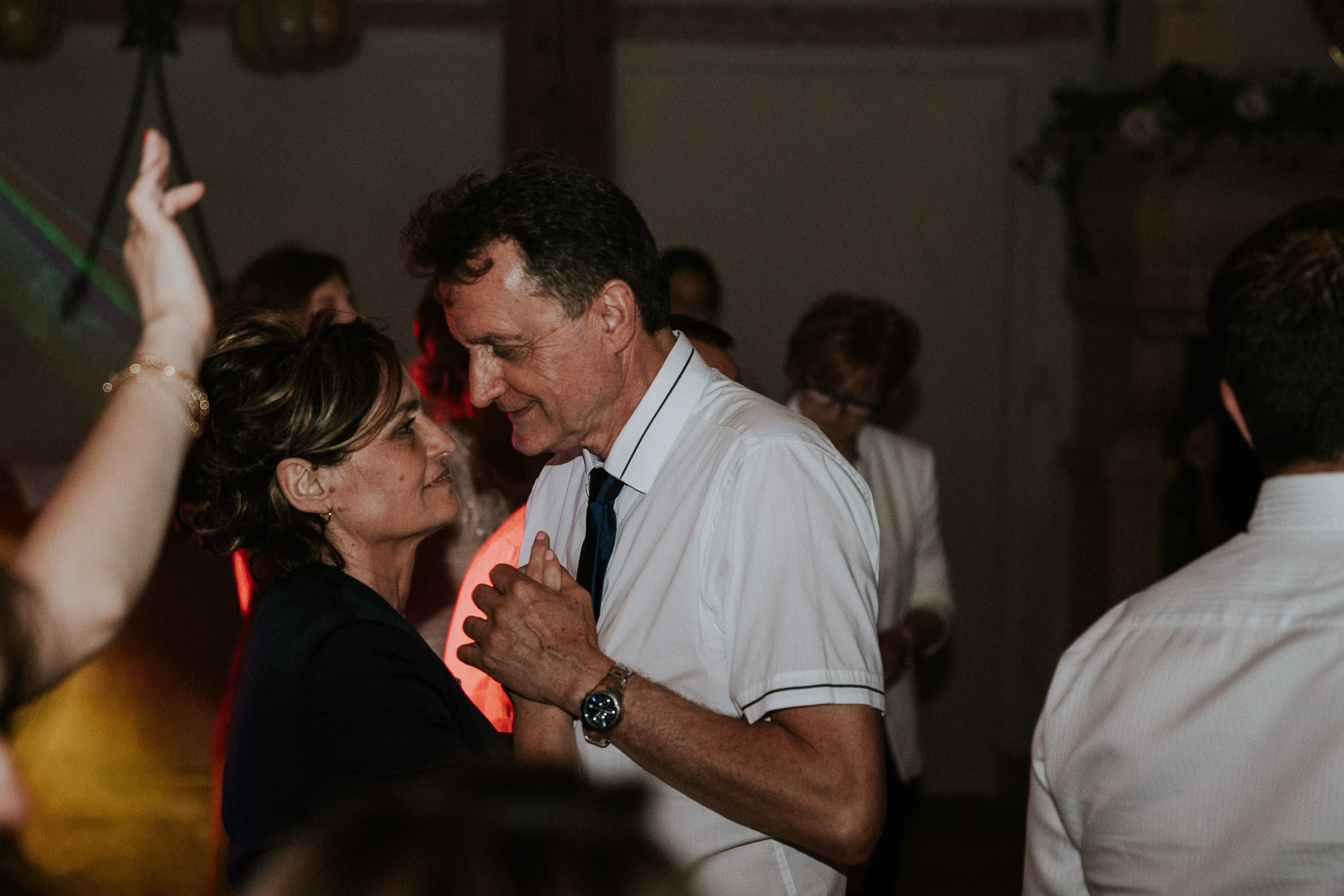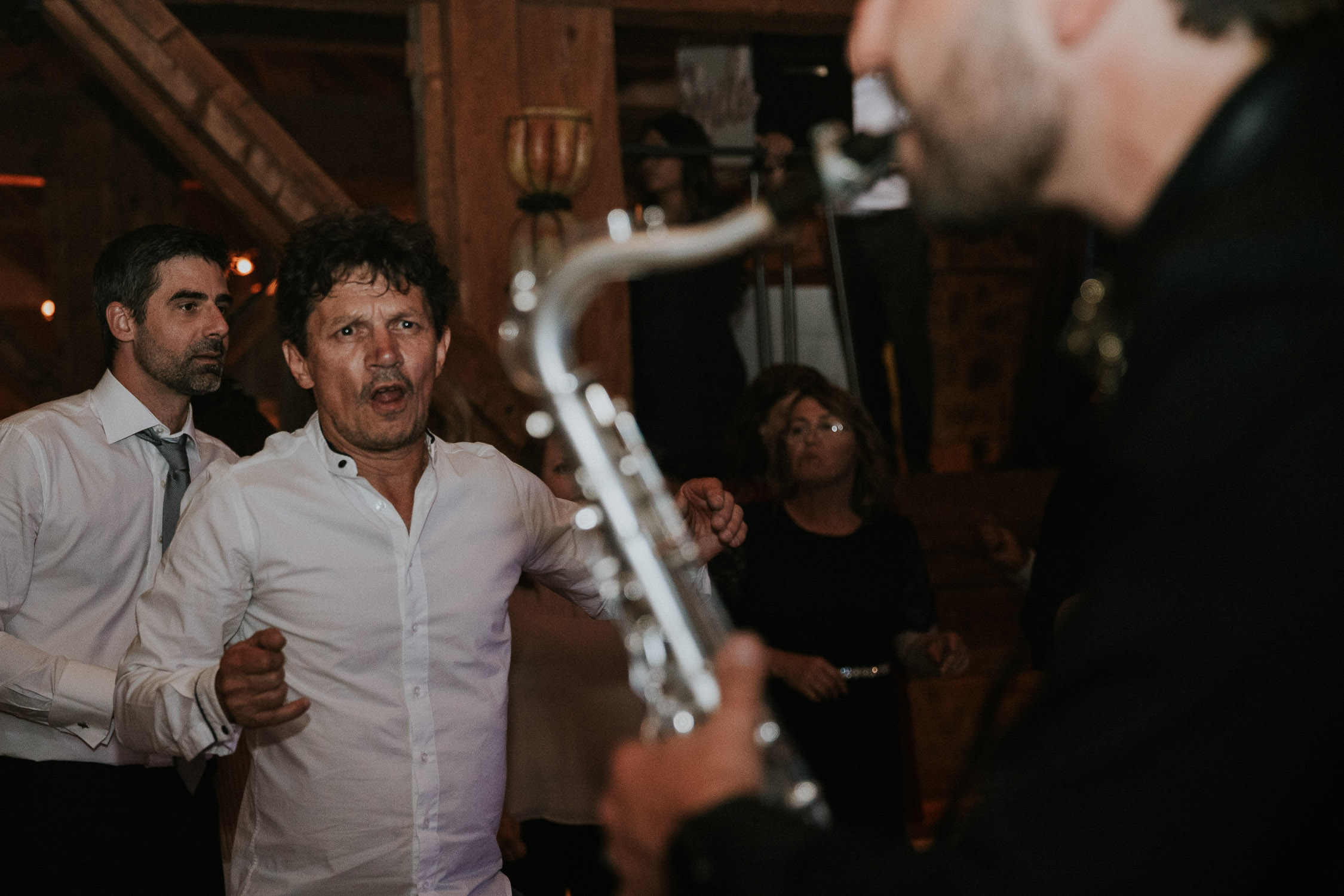 Place à la partie la plus festive de la journée, la soirée ! Comme on dit en Suisse, ce fut une sacrée noce ! Des invités déjantés, un DJ saxophoniste, un repas de rois… Je pense qu’on peut dire que la fête était une grande réussite et l’ambiance dingue… Les mariés ont ouvert le bal avec une chorégraphie incroyable (bon, ok, tous les invités avaient déjà commencé à danser dès l’arrivée des mariés dans la salle, mais ça compte quand même comme ouverture de bal, non ?), et la fête a continué jusque tard dans la nuit. La réception de ce mariage était remplie de joie, d’émotion et surtout d’amour, autant de la part des mariés que de la part de leurs familles et amis. Nous avons passé un excellent moment avec Christelle, et ce sera une joie de la suivre encore pour quelques mariages cet été ! 🙂